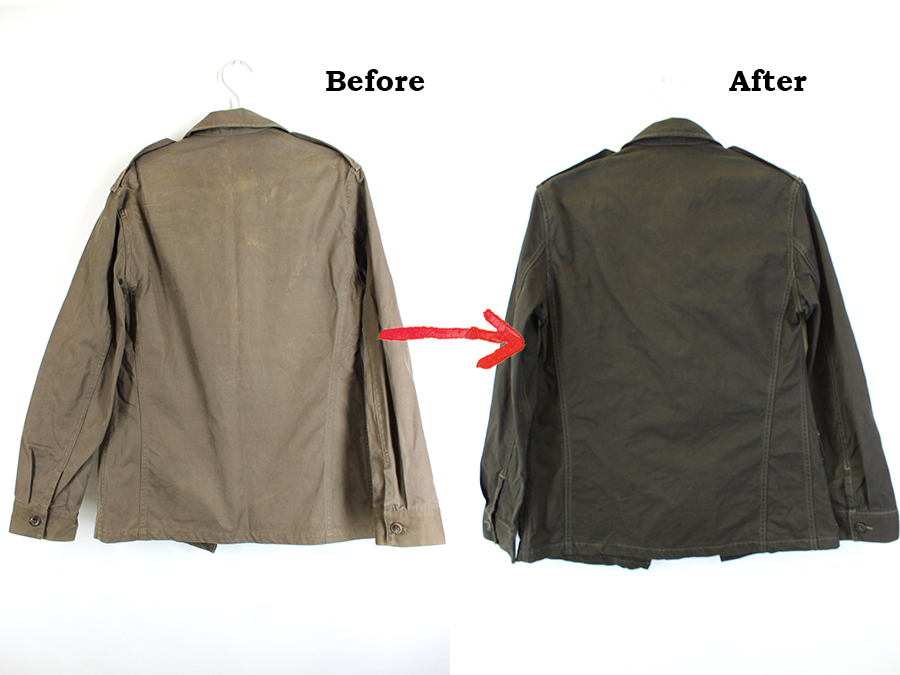 コートやブルゾンなど、アウターは撥水加工がされているものが多く、かかり具合によっては、染め上がりに影響します。